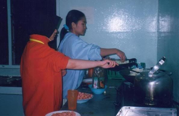 huhuhuhu~ yg ni dah sampai kat hostel Gunting Langadan! tgh lepak2 berjemur kat luar.. lelaki2 tu suruh kita org masak..dah kita terus terang yg kita ni tak pandai masak apalagi nak bagi makan 21 org mmg lah tak yakin.. tapi dah dorang janji.. walau mcm mana pun mereka akan makan.. dan akibat nya mlm tu terpaksa kita semua makan nasi dan sayur mentah resepi dari sis dan siet yahooooooo!! hidup gadis sabah dan sarawak hahahhaha~